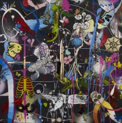In Signal Gallery‘s first group show in the new Paul Street space, they are presenting four very interesting artists whose work links and entwines in very winning ways Andrew McAttee, Dan Baldwin, John Squire and Joram Roukes. It’s a fine match between the abstract and figurative ends of the painting spectrum. However, this is not a one sided game, but an exploration of overlapping skills and techniques, that will make excellent viewing, if not producing any obvious winners.