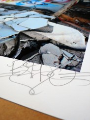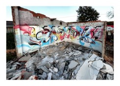 “Casa Nova, or New House in Catalan, was painted in a torn out house on the outskirts of of Barcelona in the winter of 2009. The message, colors and delicacy of these painted words strike a stark but seductive contrast to the chaos and decay surrounding the remains of these walls. The incredible detail and texture in this image shine through stunningly in this large photographic print.”